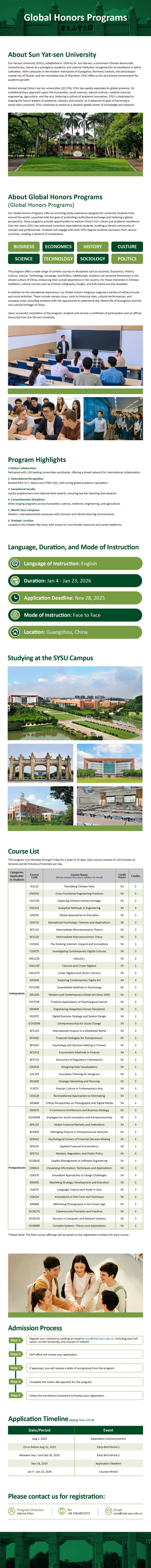 • 国际留学生研学项目(Global Honors Program)